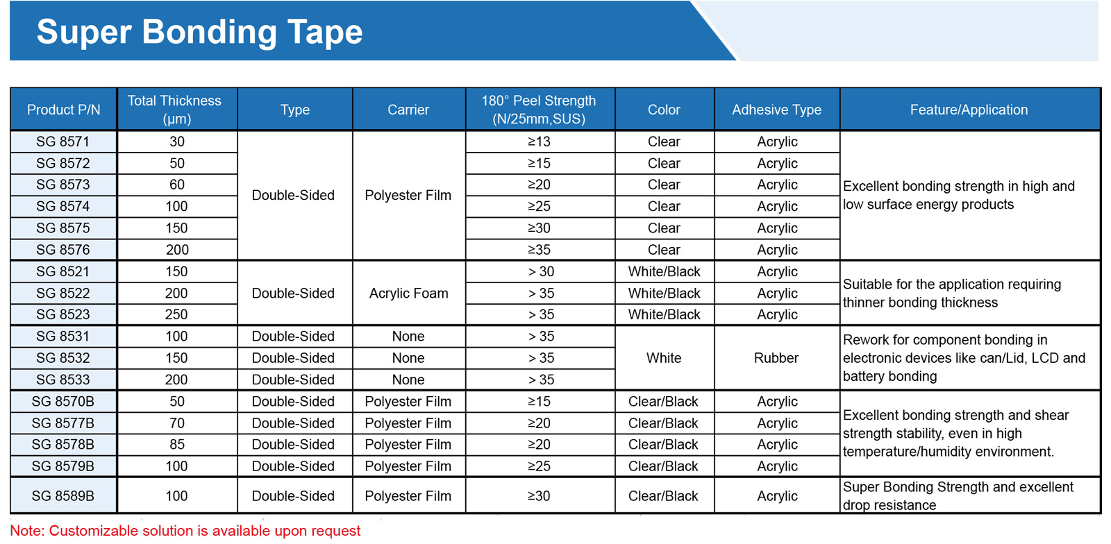提供各種膠帶,由PET、無紡布、泡沫、涂有丙烯酸、硅樹脂、橡膠、熱熔、熱轉化粘合劑的PI基材制成??商峁└鞣N寬度、長度和釋放襯墊,以滿足特定需求,專為工業、商業和家庭應用的特殊環境而設計。