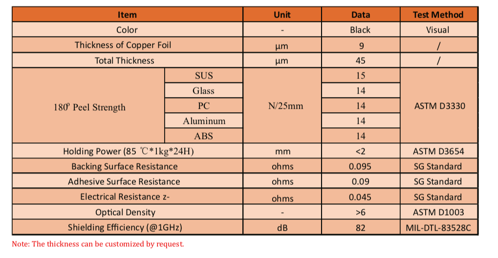 ShielditeTM CFU045DB單面導電黑色箔帶由黑色銅箔背襯和嵌入導電粘合劑中的導電非織造布組成。CFU045DB不僅為小接地面積的可靠接觸提供了優異的體積導電性,而且還增強了膠帶的物理性能,具有良好的可加工性,還具有優異的抗劃傷性能和良好的彎曲性能。